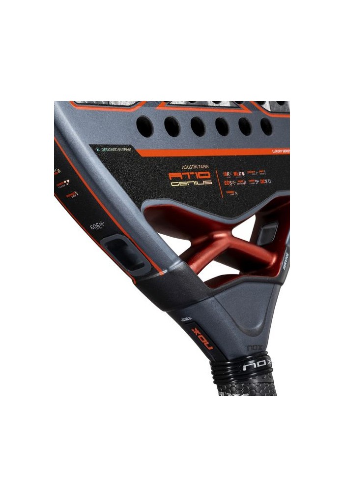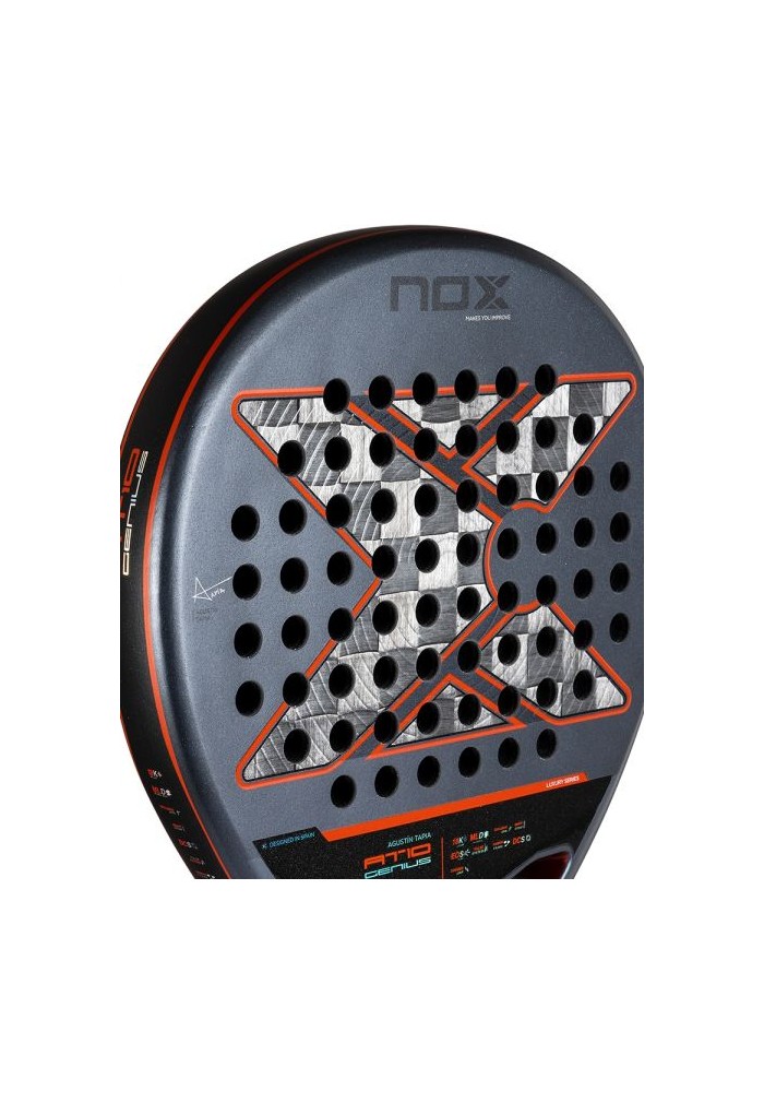 Nox AT10 Genius 18K Alum By Agustín Tapia 2025, pala con forma de lágrima para jugadores polivalentes de nivel avanzado. Planos rugosos para más efecto.