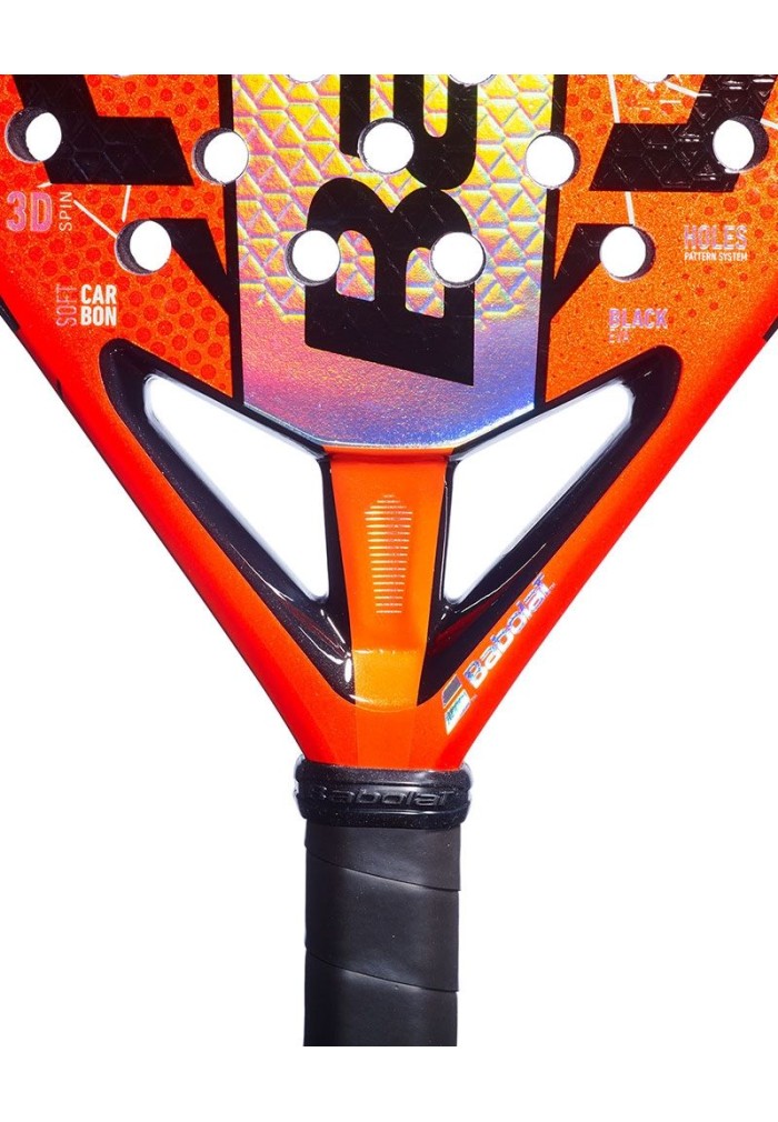 La Babolat Viper Soft Juan Lebrón 3.0 es una pala de alto rendimiento diseñada para jugadores que buscan potencia explosiva con un tacto suave y cómodo. Su forma de diamante, combinada con un balance alto y un peso aproximado de 365 gramos, ofrece un equilibrio perfecto entre fuerza y precisión en cada golpe.