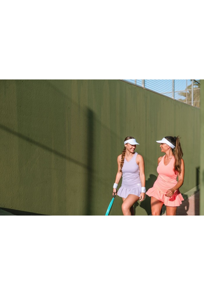 camiseta BB básica de color coral light,con corte nadadora es una opción ideal para quienes buscan comodidad y estilo en sus partidos de tenis, pádel o pickleball.