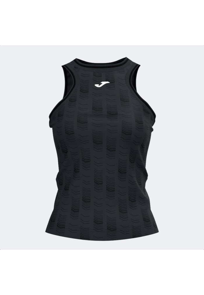 Camiseta sin mangas de mujer, diseñada para la práctica de deportes de raqueta como tenis y pádel. Modelo técnico especialmente pensado para rendir al máximo en entrenamientos y partidos durante los meses más cálidos.